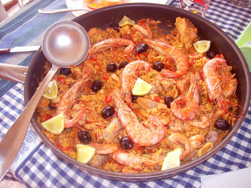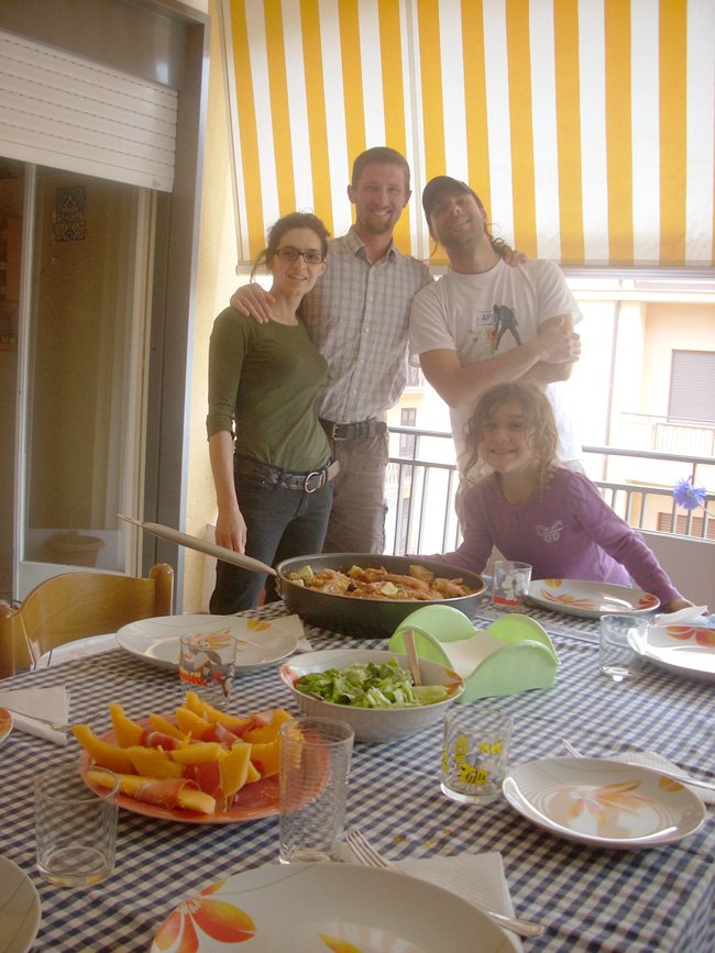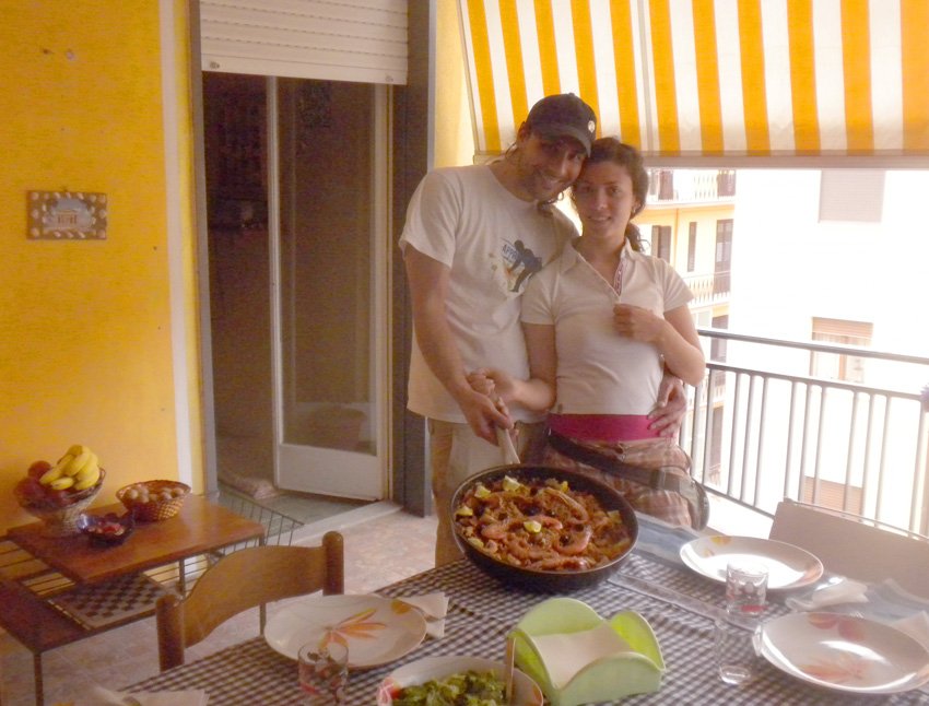 Our day was not devoted only to the monumental. We also took some time to enjoy a Mediterranean culinary masterpiece originating in Spain, but perfectly suited to the marine bounty of Sicily. Stathis and Elettra, besides their architectural and artistic talents, are also excellent cooks. They treated us to a lovely and delicious paella, created by themselves (in what they told me was their first attempt, which I had no choice but to believe. I was impressed not only with their culinary prowess, but also with their brilliant audacity in making an untried recipe for guests). Elettra also graciously provided many of the photos below after Tony's photos were eaten by our camera.