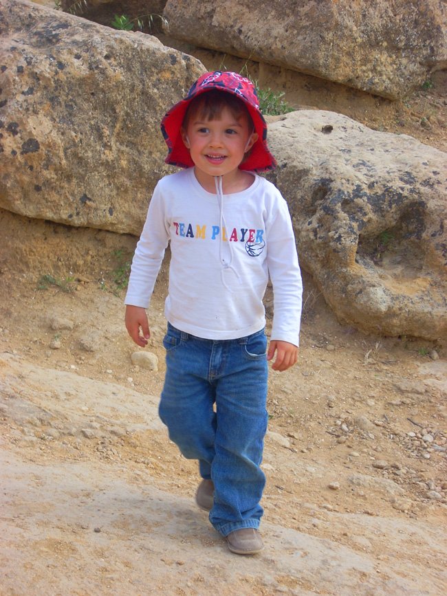 For Dominique, the main attraction was climbing stairs, hills, and stones, and finding sticks to serve as swords. Miraculously, he only fell down and drew blood twice.
