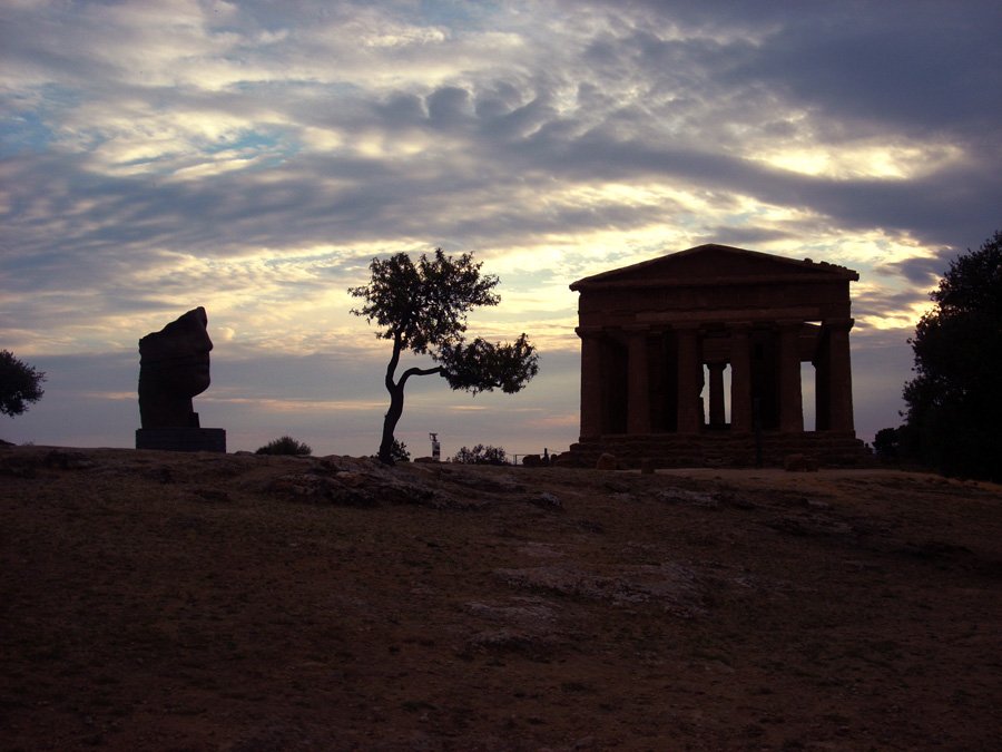 We were fortunate to have with us the best possible person with whom to visit a ruin such as this: a Greek architect (our friend Stathis). He explained the features of the Doric temples, and how the ancient Greeks built every temple with slightly different proportions, in their eternal quest for the most perfect and beautiful shape. In the Temple of Concordia (above), which is the dramatic centerpiece of the site, the space between each of the supporting pillars is slightly different, decreasing as they move toward the corners, to fool perspective and entice the eye into perceiving them as equal in size. The Temple is preserved so well because in the sixth century A.D., in response to a papal edict, it was converted into a Byzantine basilica. The Christians pulled down all the pagan statues, closed up the entrances other than the Western one, and built an inner wall on each side, with twelve arches for the twelve apostles. It looks like the ancient Greeks have the last laugh here, since nobody comes to see it now except to celebrate its rich and glorious pagan-ness.