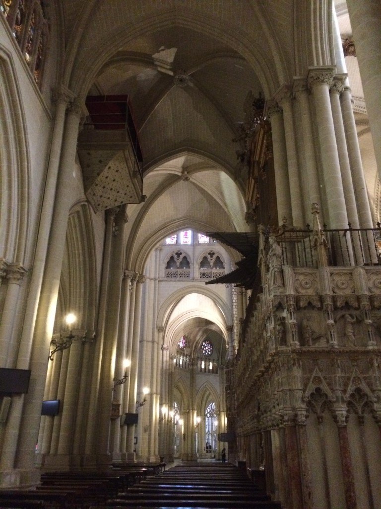 The most beautiful cathedral I remember seeing in Spain, and possibly the most beautiful religious edifice I've ever seen in my life, is the Cathedral in Toledo. It's a towering dream of Gothic splendor. Yet somehow, even with all the opulence it doesn't seem like too much. The proportions are too perfect, and there are plenty of contemplative open spaces. Even the intricate carvings don't seem overdone; instead, they pull the viewer into a distant world of chivalry, grandeur, and faraway beauty.