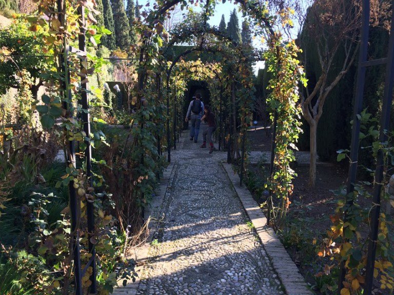 Attached to the Alhambra is the Generalife, another palace with exceptional gardens that was meant as a retreat for the rulers from the pressures of court life at the Alhambra. Here are Axa and Tony, taking advantage of the maze-like structure of the gardens to play a bit of hide-and-seek near the end of our visit.