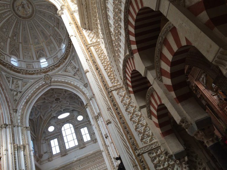 They've also done a significant amount of excavation to uncover a previous Christian basilica. There's a place where you can see the original tiled mosaic floor, several feet below the current floor, and artifacts from the basilica are on display inside the Mesquita. But the most arresting feature of the building is the soaring Christian cathedral, which rises incongruously in the centre. It is impossible to describe the disorienting feeling of walking suddenly through an archway from the peaceful stillness of the mosque into the brilliantly lit cathedral.