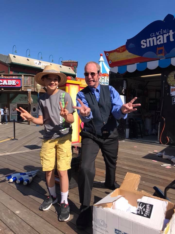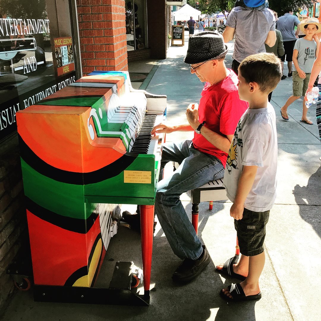 Grandpa Bringhurst playing the sidewalk piano in Davis |