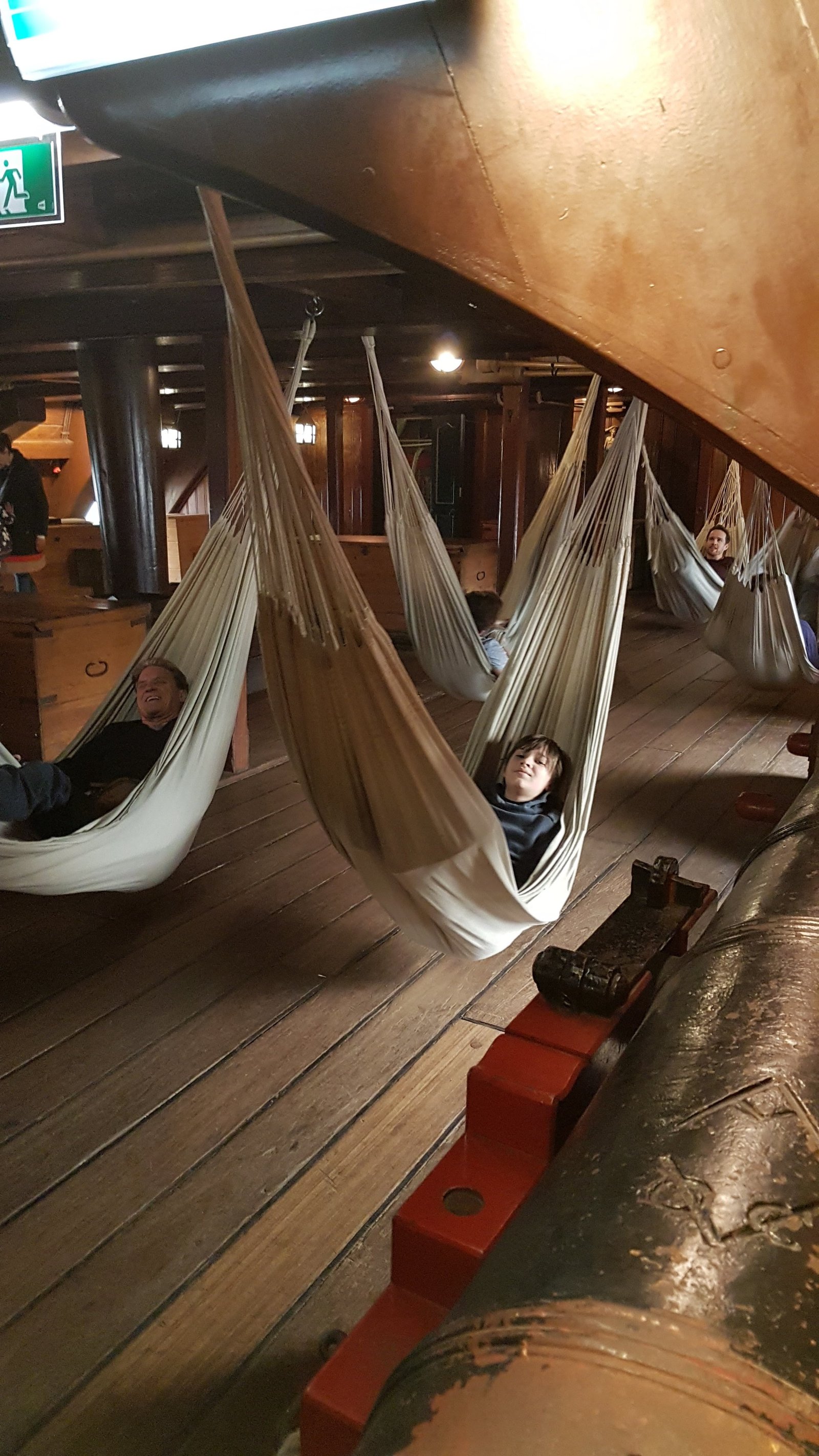 in the hull of a real-life, floating Dutch East Indies replica ship |