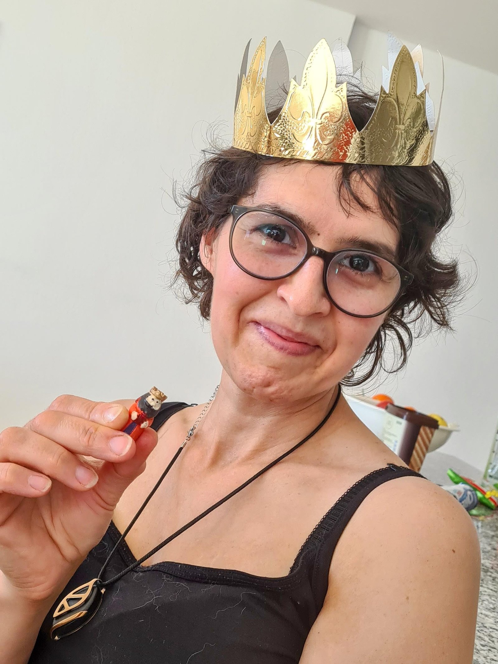 Sarah is the lucky winner, finding one of the 3 kings in the cake |
