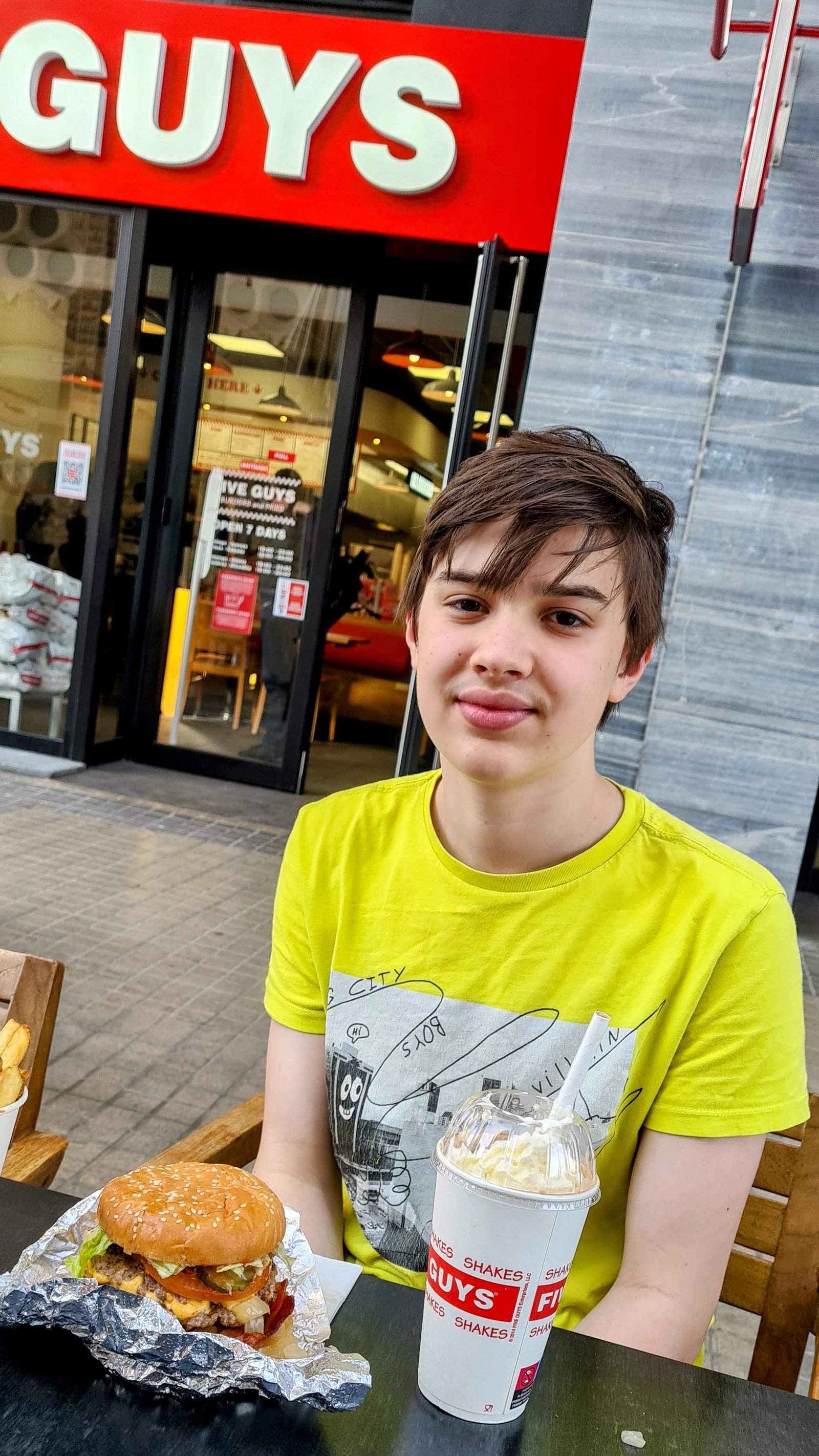 possibly the best outdoor seating at any FIVE GUYS burgers in the world :) |